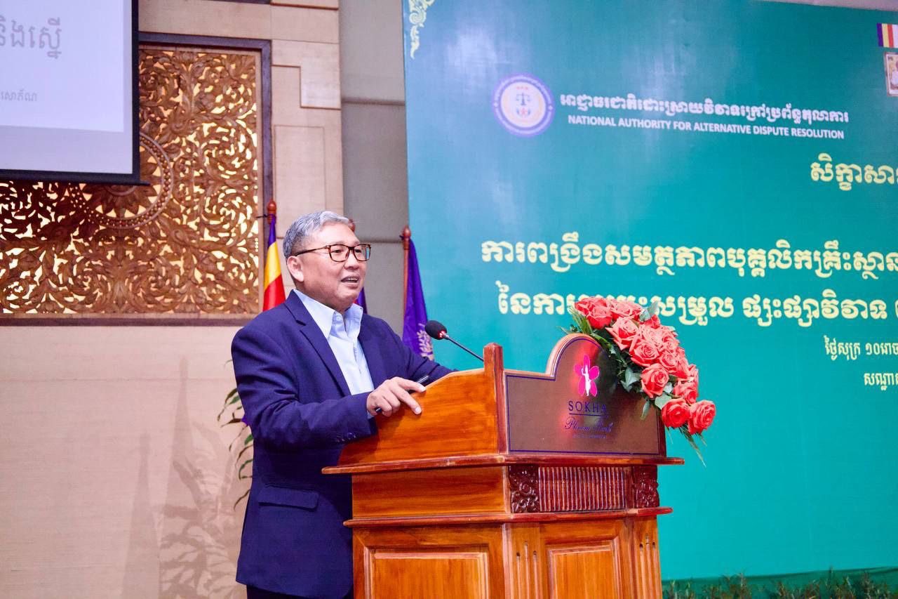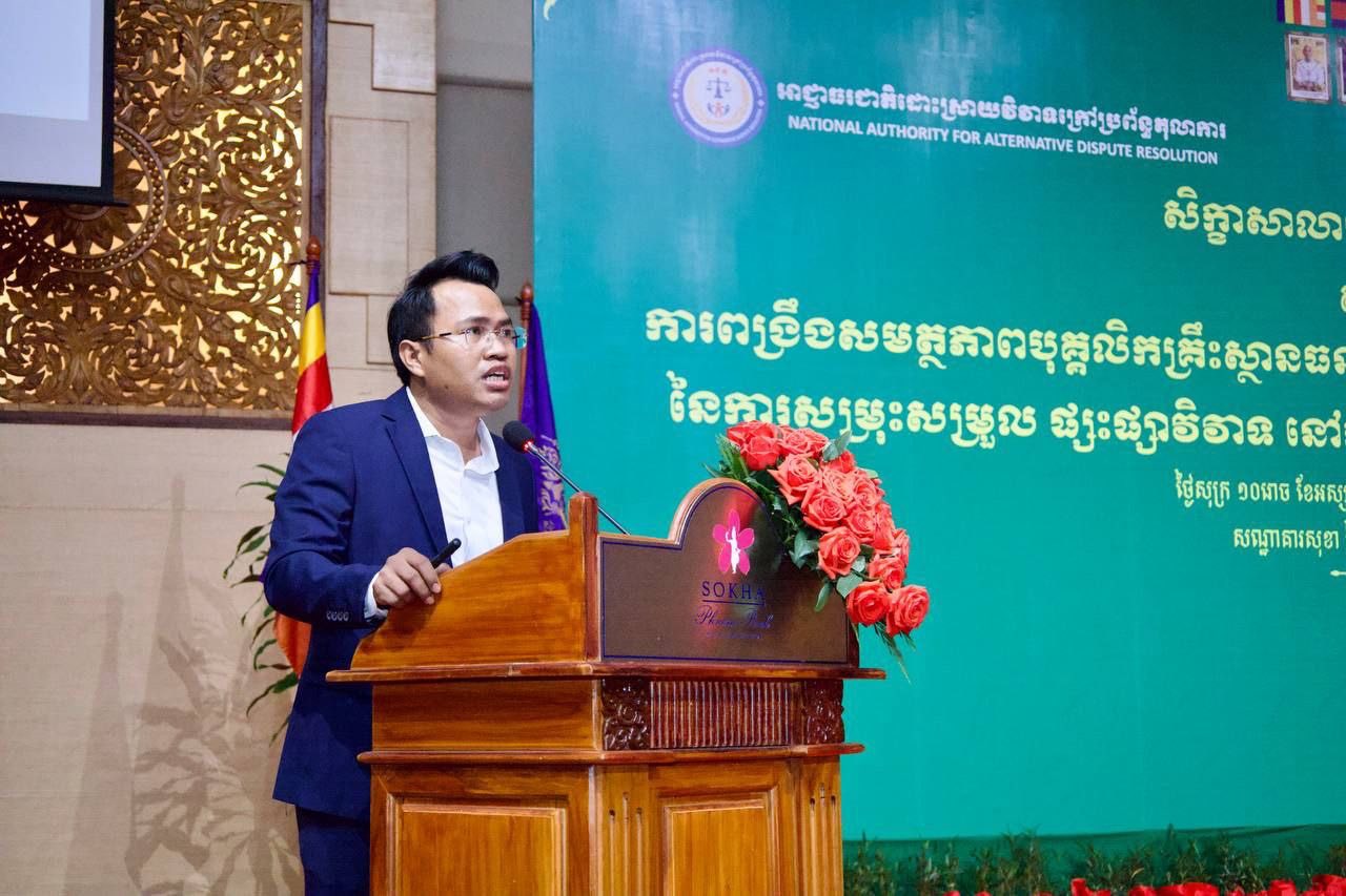 ឯកឧត្តម ប៉ូច សោភ័ណ អនុរដ្ឋលេខាធិការក្រសួងយុត្តិធម៌ និងជាសមាជិក អ.ដ.ក. បានអញ្ជើញជាអធិបតីក្នុងពិធីបិទវគ្គសិក្ខាសាលាបណ្តុះបណ្តាល ស្តីពីការពង្រឹងសមត្ថភាពបុគ្គលិកគ្រឹះស្ថានធនាគារ និងហិរញ្ញវត្ថុ ដើម្បីបង្កើនប្រសិទ្ធភាពនៃការសម្រុះសម្រួលផ្សះផ្សាវិវាទ នៅក្នុងវិស័យធនាគារ និងហិរញ្ញវត្ថុនៅកម្ពុជា