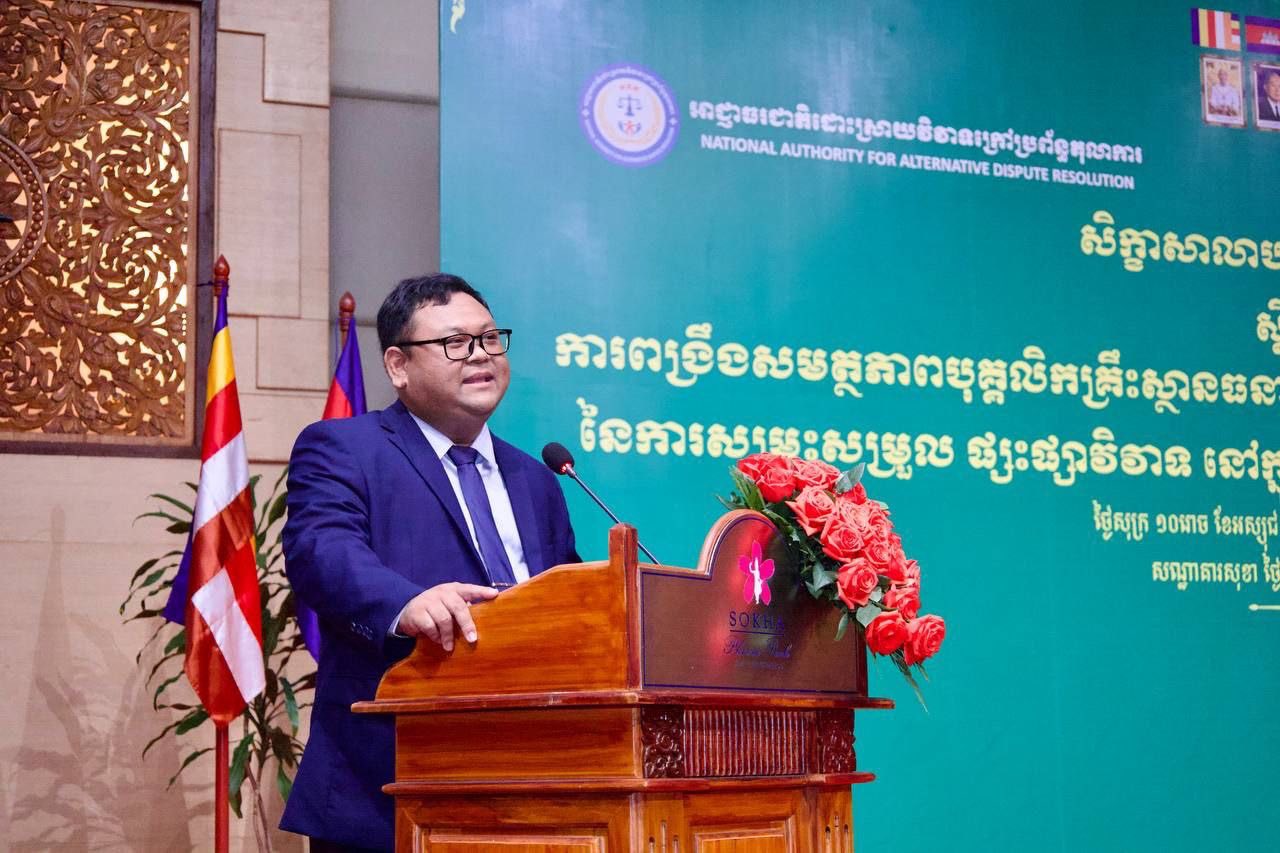 នារសៀលថ្ងៃសុក្រ ទី១៧ ខែតុលា ឆ្នាំ២០២៥, ដោយទទួលការអនុញ្ញាតដ៏ខ្ពង់ខ្ពស់ពី ឯកឧត្តម កើត រិទ្ធ ឧបនាយករដ្ឋមន្ត្រី រដ្ឋមន្ត្រីក្រសួងយុត្តិធម៌ និងជាប្រធាន អ.ដ.ក., ឯកឧត្តម ប៉ូច សោភ័ណ អនុរដ្ឋលេខាធិការក្រសួងយុត្តិធម៌ និងជាសមាជិក អ.ដ.ក. បានអញ្ជើញជាអធិបតីក្នុងពិធីបិទវគ្គសិក្ខាសាលាបណ្តុះបណ្តាលស្តីពីការពង្រឹងសមត្ថភាពបុគ្គលិកគ្រឹះស្ថានធនាគារ និងហិរញ្ញវត្ថុ ដើម្បីបង្កើនប្រសិទ្ធភាពនៃការសម្រុះសម្រួលផ្សះផ្សាវិវាទ នៅក្នុងវិស័យធនាគារ និងហិរញ្ញវត្ថុនៅកម្ពុជា។